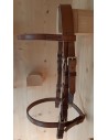 Cette bride a été réalisée dans un cuir naturel à tannage végétal. Sa muserolle et son frontal sont doublés afin d'assurer un confort optimal pour le cheval. Ses boucles sont en laiton massif.